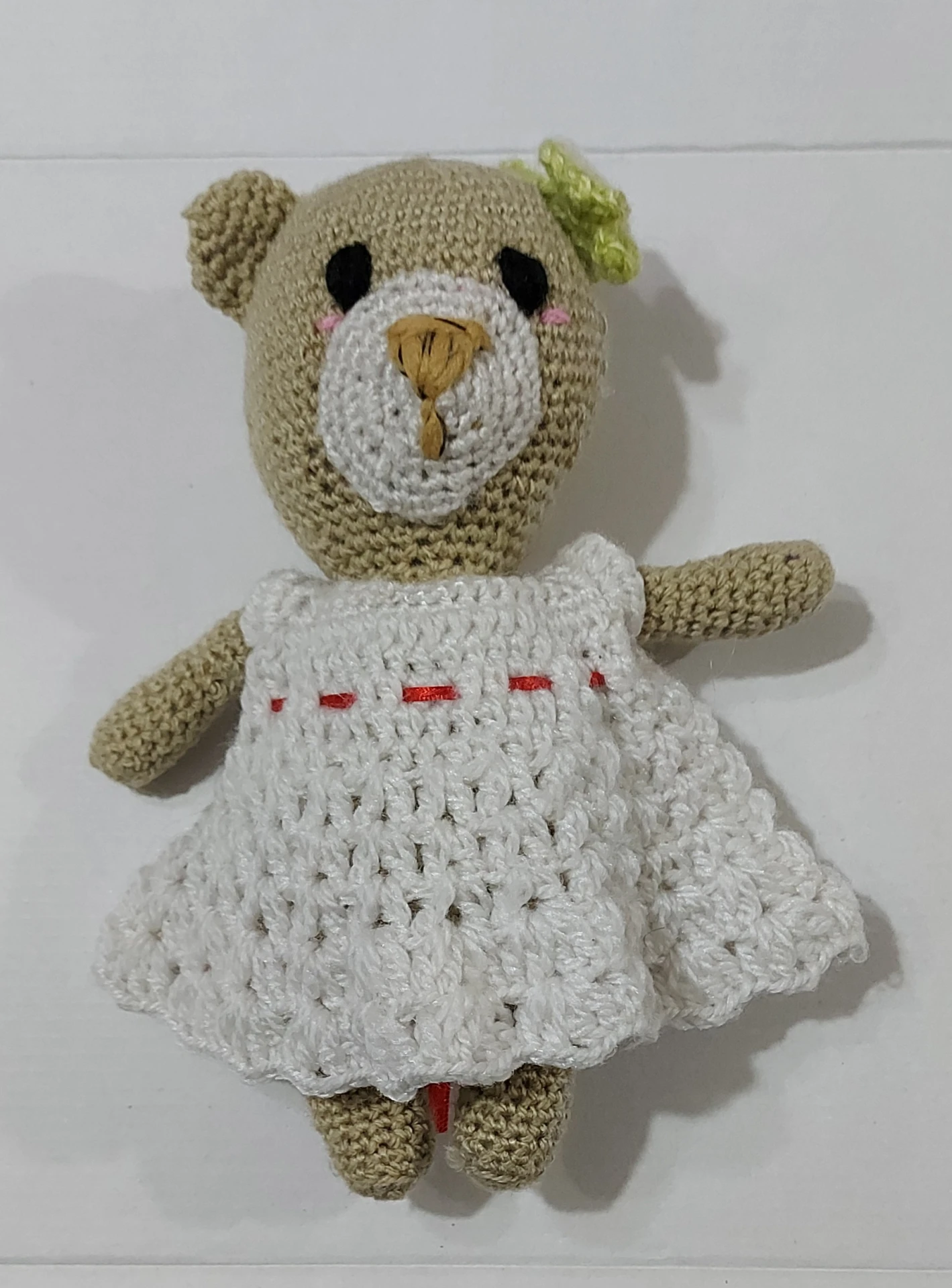 Osa hecha a crochet. Realizado con lana sintetica, ojos y ocico bordados.